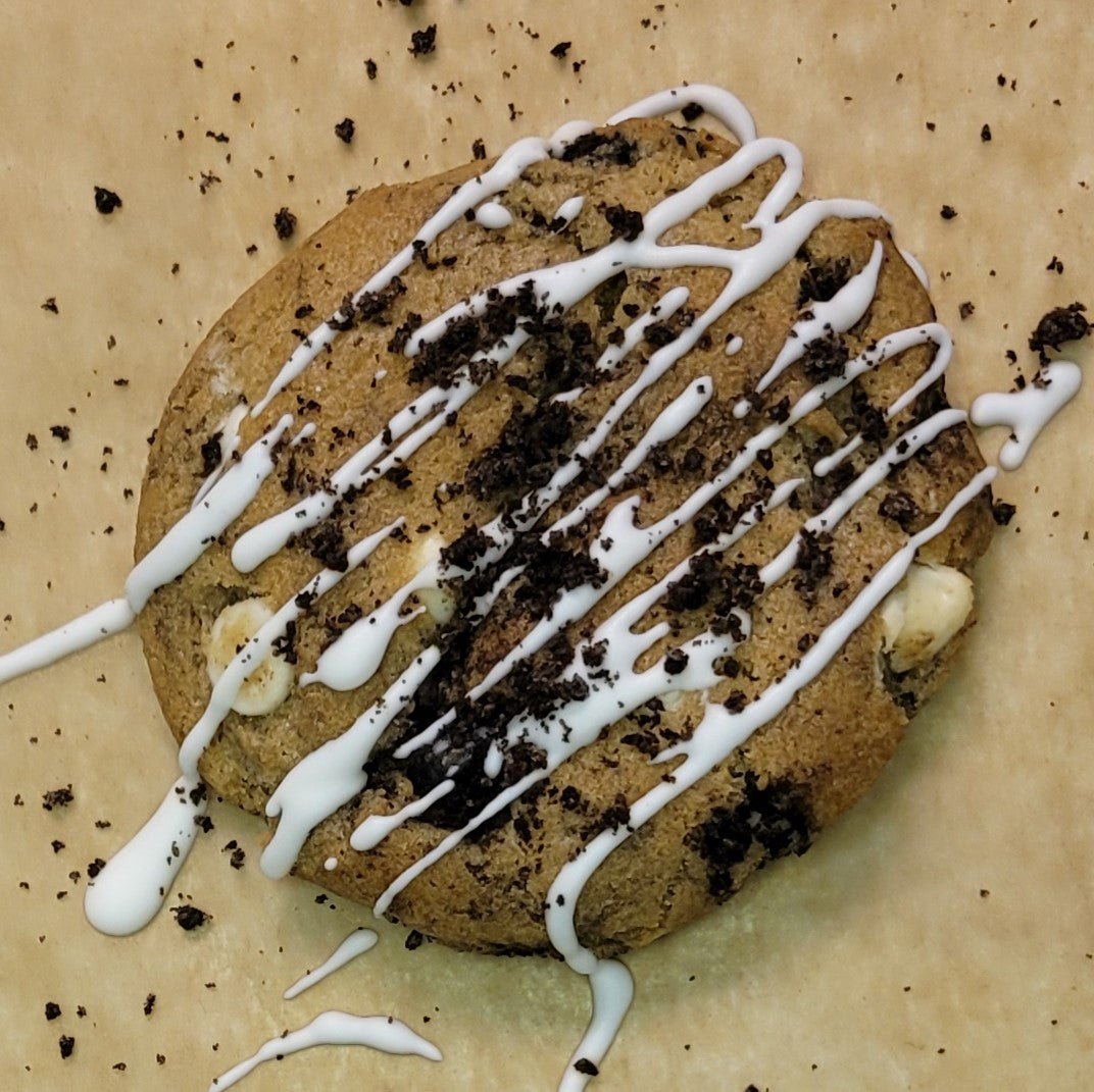 One of our Oreo Addiction cookies may not be enough! These tasty beauties are made with our delicious vanilla & brown sugar cookie dough and jammed with chunks of Oreos and white chocolate chips. We then top them off with a creamy glaze and Oreo crumbs. This is one addiction we encourage you to share!